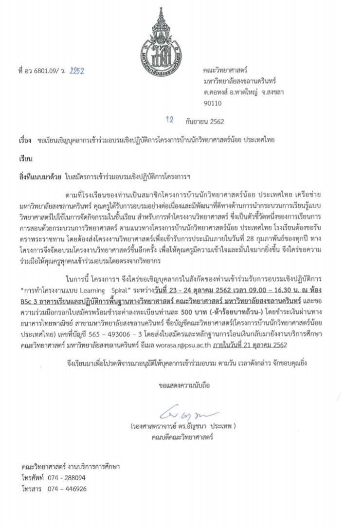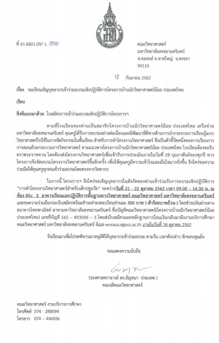ครูปฐมวัยของโรงเรียนประทีปธรรมเข้าอบรมโครงการบ้านนักวิทยาศาสตร์น้อย ณ คณะวิทยาศาสตร์ มหาวิทยาลัยสงขลานครินทร์ วิทยาเขตหาดใหญ่ ใน 3 หลักสูตร